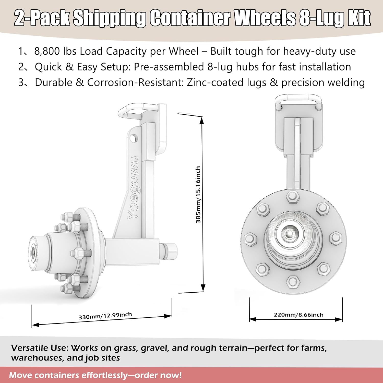 | Included Components | 2 shipping container wheels |